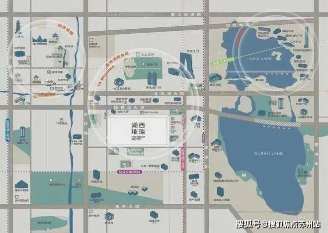 此外,项目3公里范围内聚集了 苏州中心、李公堤商业街、欧尚超市、泰华商城、山姆会员店等多元化商业集群。驱车6公里可达 湖东CBD, 久光百货、圆融时代广场、时代广场、星光天地等高端消费目的地,为居民提供丰富多元的购物、餐饮和娱乐选择。