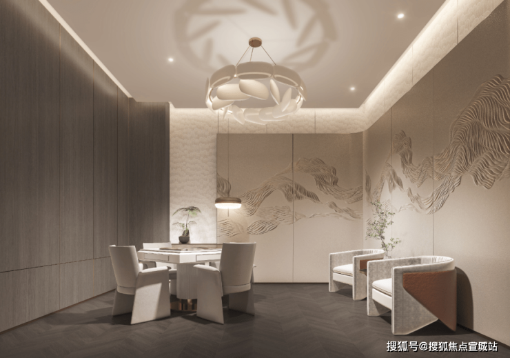 刚才说过的会所是下沉式的,与共享庭院一起,在视觉层面上打破了传统的平面布局,营造了更立体的景观体系。在功能方面,形成了多维度互动休憩空间。