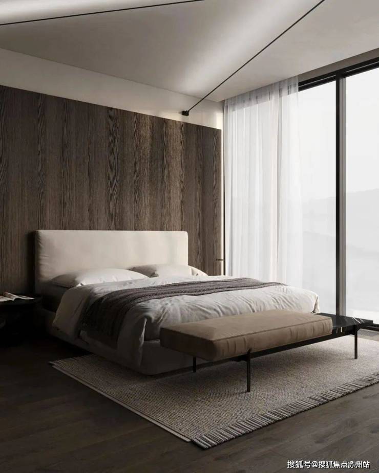 蓝城丹枫云庐售楼处电话☎:400-882-8814(预约热线)✔✔✔主卧的色调十分简约内敛,为屋主打造出了一个能够使人沉淀心灵的休憩空间。深木色的存在让空间更显厚重而沉稳,柔软而蓬松的白色床品与其形成了对比。床头灯的造型简洁却富有设计感,床对面的沙发椅能够让屋主在这里度过惬意的下午茶时光。衣帽间中则选用深色与暖调的灯光营造精致的空间氛围。