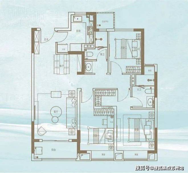建面约142平四房两厅两卫
