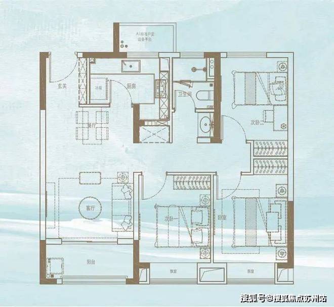 建面约95平三房两厅一卫