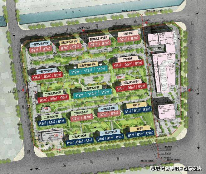 主力户型:洋房建面约 81㎡三居、95㎡三居;高层建面约 97㎡三居、112㎡四居。