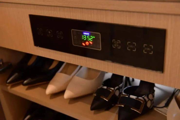 第一道屏障是玄关消杀系统,项目配置鞋柜精灵,健康祛味除臭、恒温烘干除湿除潮,保证室内整洁清爽。