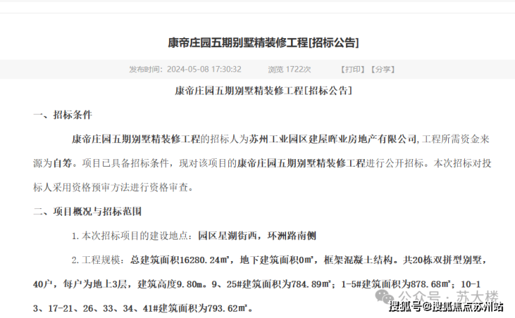 其实早在今年1月份,网上便有关于康帝庄园五期精装工程的招标计划文件,只是未标明具体的建设面积及指标。