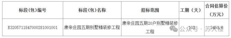 近日,康帝庄园五期别墅精装修工程正在招标!