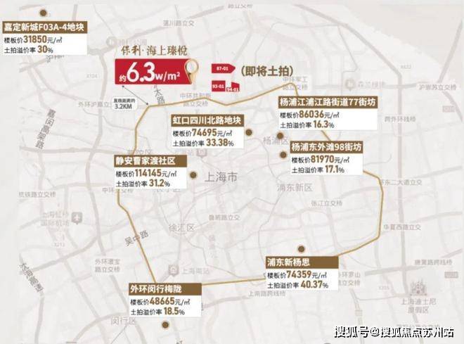 而5月14日上海市土地交易市场发布宝山区W12-1301单元90-01、91-01、92-01、93-01、94-01、87-01地块挂牌,地块起拍价81亿,起拍价对应的可售商品住宅整盘微利售价6.3万/㎡,若以当前市场30%溢价率来算,对应的可售商品住宅整盘微利售价将直冲7.9万以上/㎡中环旁大四房总价更是轻松破千万!