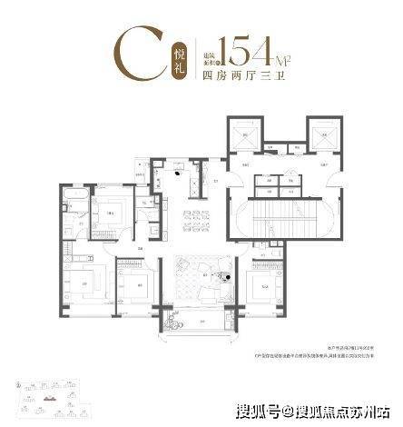 另外,主卧小家化的套房设计、270度的南向瞰景阳台、四开间朝南的开阔尺度。