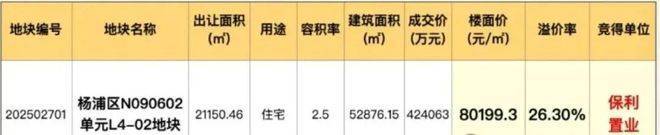 上海四批次土拍中,杨浦区一地块以26.3%的高溢价率成交,楼面价高达80199元/㎡。而在此之前,北蔡楔形绿地新宅地出让,最终以高达40%溢价率、7.14万/㎡楼板价成交,“面粉贵过面包”已成常态,起售价几乎都会超过10万+,内中环的置业门槛可谓一增再增。