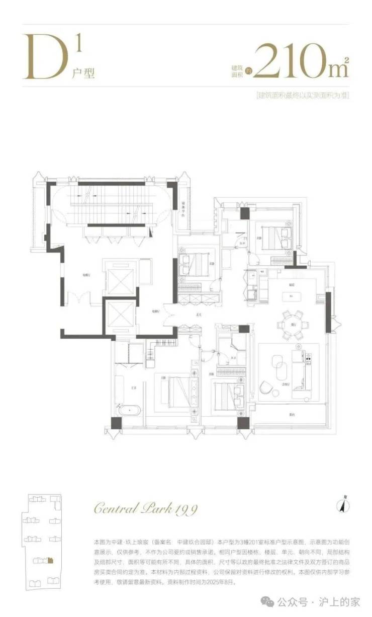 建面约210㎡,分为中间套与边套产品: