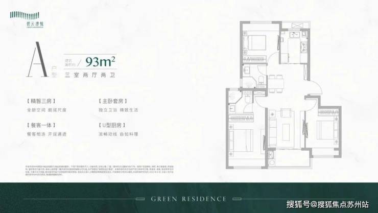 建面约93㎡A户型,1梯2户,层高约2.95米,4号楼为精装交付,2号、3号为毛坯交付,得房率约79%,总价约430-480万;