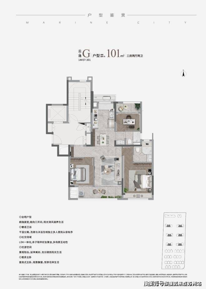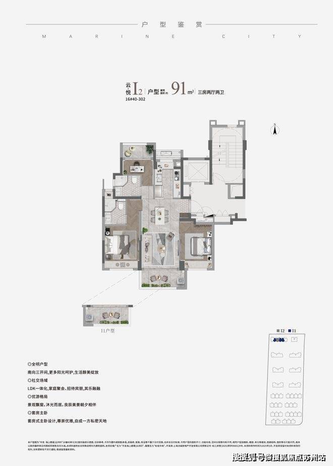 建面约91㎡的三房采用经典的飞机户型,南北通透,主卧带飘窗,晾衣服都能晒到太阳,适合当下年轻上班族对阳光和悦己体验的生活需求;