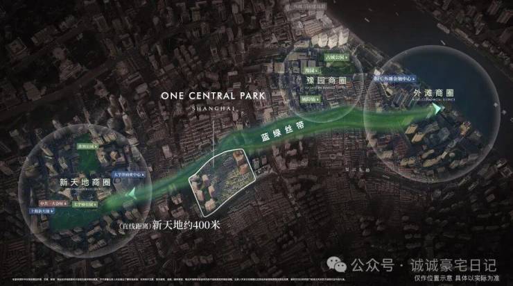 距离新天地直线距离约400米,作为蓝绿丝带规划上的关键节点,随着大新天地东进南拓战略逐步实施,通过水景、绿地和公共空间,串联新天地、豫园、外滩三大世界级商业版图。