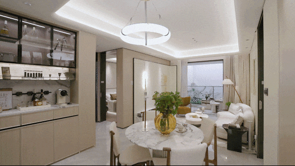 南向双阳台的设计,极大地加强了室内的通透性,大幅增加了采光面。而业主也可以根据入住后自身需要,选择是否将南向双阳台接通,形成一个“跑道级”阳台,家政空间、阳光房,一键享有。