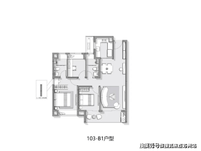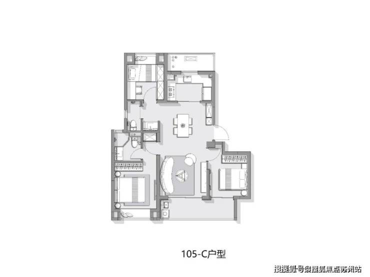建面约103㎡3房2卫户型图:众禾嘉苑售楼处电话:400-902-3966