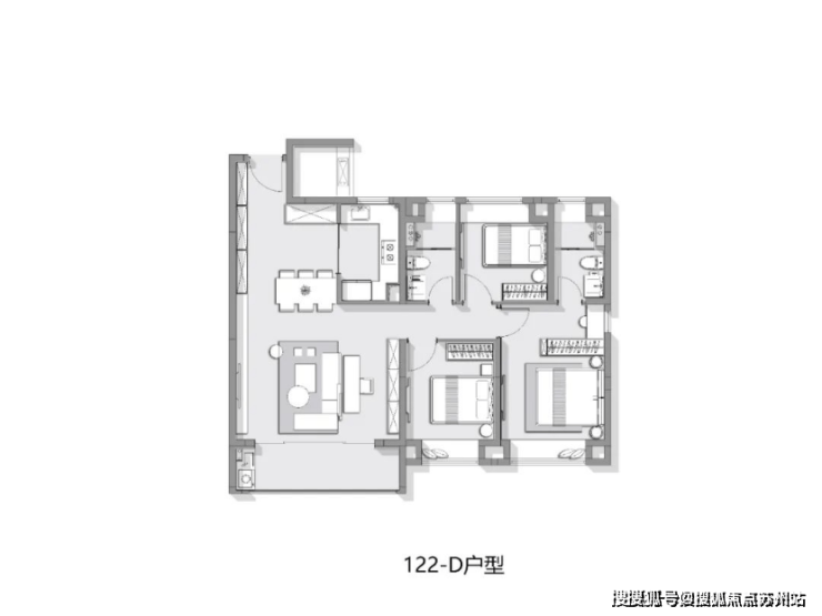 建面约122㎡3房2卫户型图:众禾嘉苑售楼处电话:400-902-3966