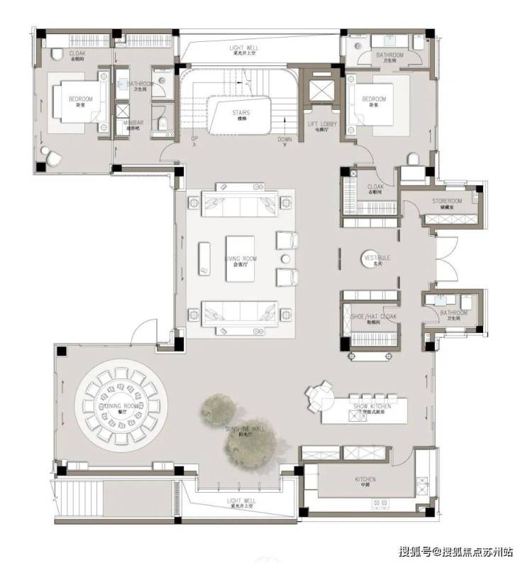 湖亭望月观湖大宅将“全龄代际融合”的理念融入生活空间,首层的客厅+餐厅+阳光厅,二层的“第二客厅”和约5.7米挑高的地下休闲区,各年龄段的家人既可以找到互不干扰的空间,又可以聚在一起传递亲情。