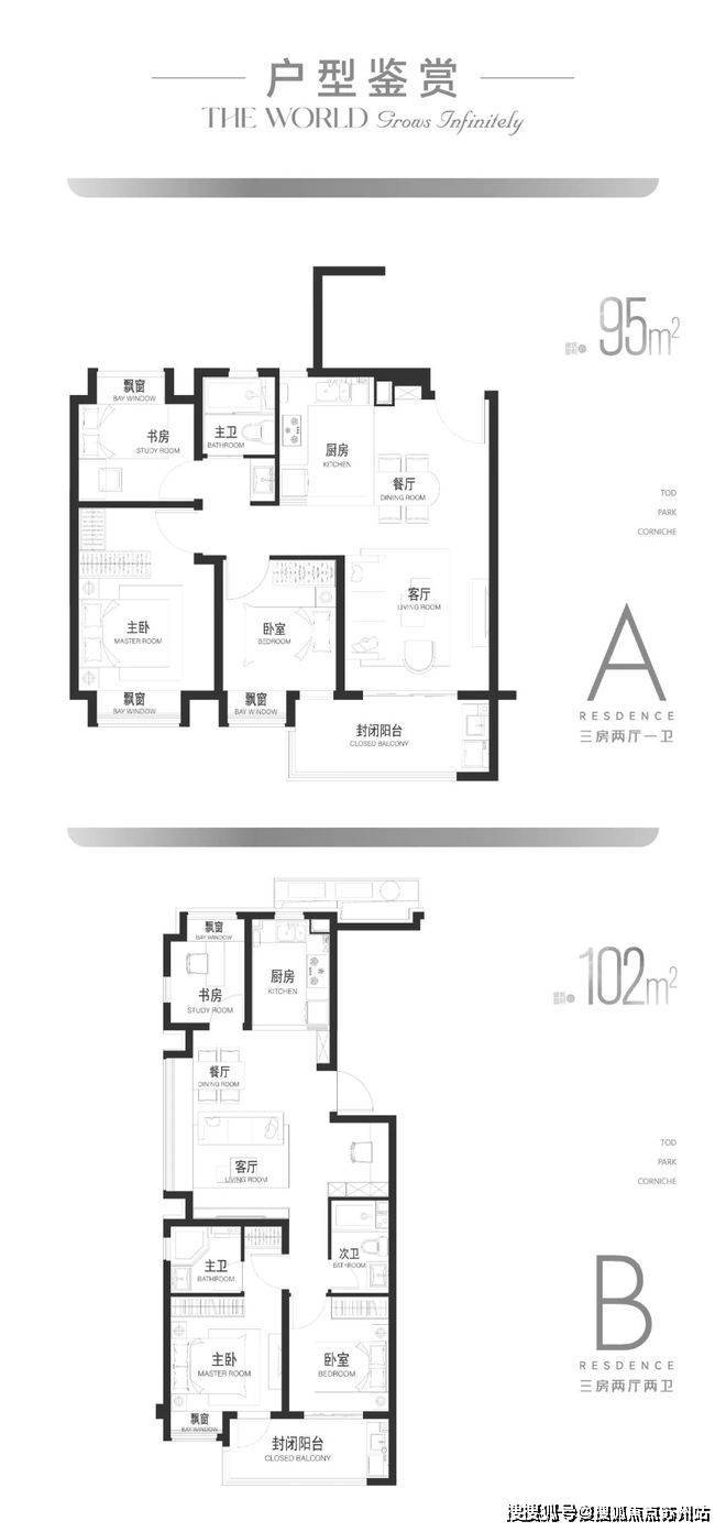 A户型95㎡及B户型102㎡▼