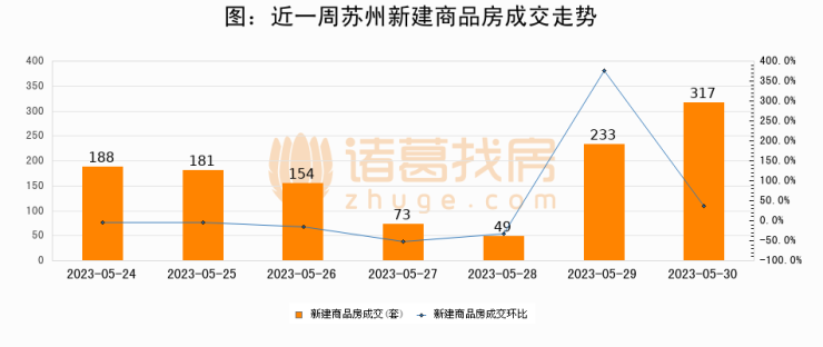 【苏州成交日报】05月30日新房成交317套、二手房313套;涨价房源968套