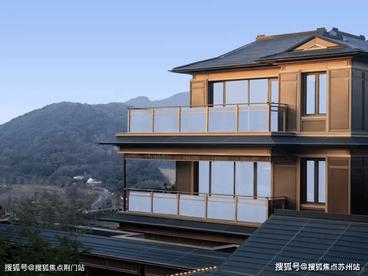 建筑立面:古今交融的诗意表达:外立面以香槟金铝板为基调,搭配蓝眼睛石材与玻璃幕墙,融合传统歇山重檐、纳福悬鱼等元素,既保留宋式建筑的对称美学,又赋予现代建筑的轻盈通透。合院组团采用三面庭院设计,L型景观面与环绕式檐廊,将超山梅影、丁山湖光引入每一扇窗景!