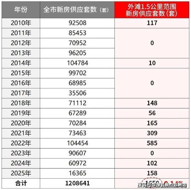 据小胖君统计,自2010年至今,外滩1.5公里核心圈内仅供应1650套新房,占全市新房总量比例低至约0.14%。
