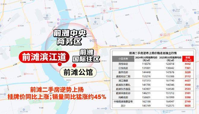 而前滩滨江超级完整体,在2025年上海楼市中交出了惊艳成绩单——当约98%的板块挂牌价同比下降时,前滩逆势“量价齐升”,走出独立行情。