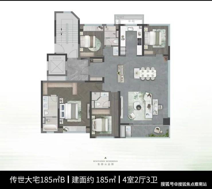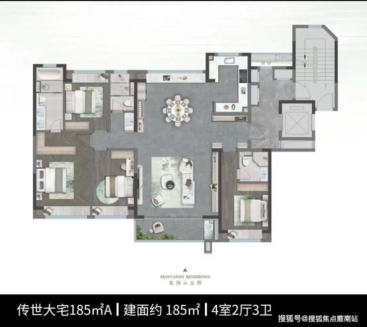 * 户型设计上,主打大面宽、全景视野。特别是185平方米边户的“270°环幕全景”设计,是其重要的产品卖点。