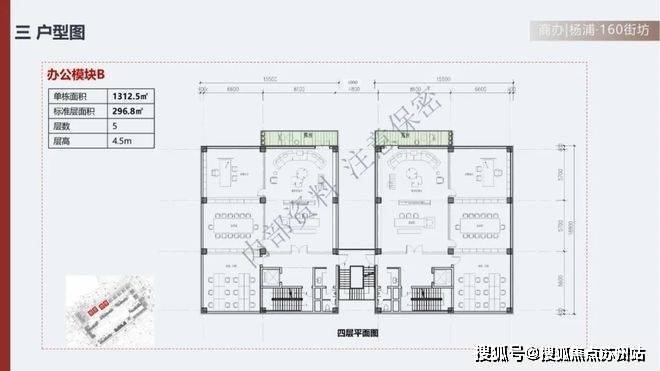 地上5层+地下1层,地上层高4.5米,地下层高5.25米。