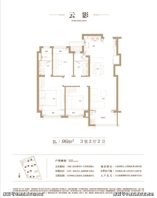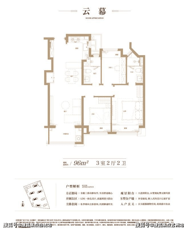 建面约96㎡3房2厅2卫▼