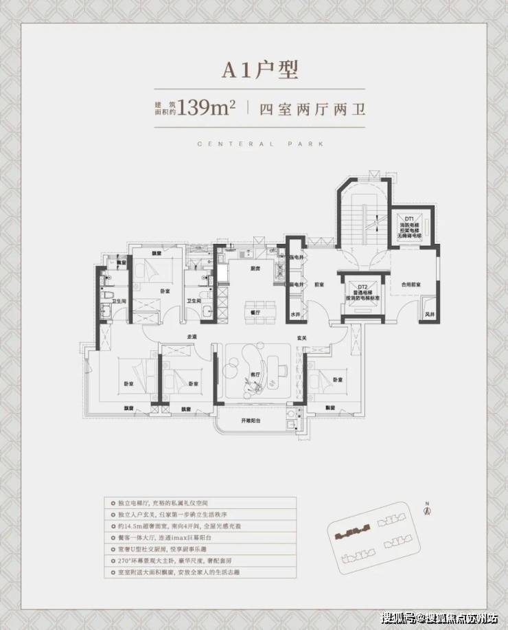 其中建面约139㎡ A1户型,就做到了约14.5米超奢南向面宽,全明横厅+IMAX巨幕阳台,让阳光成为家中常驻的贵客。