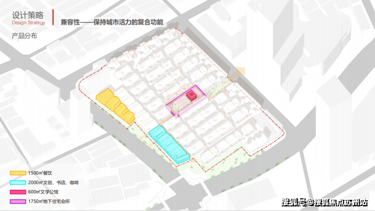内部有文学公馆、餐饮,商业配套嵌入文创、书店、咖啡等场景,以及地下会所。