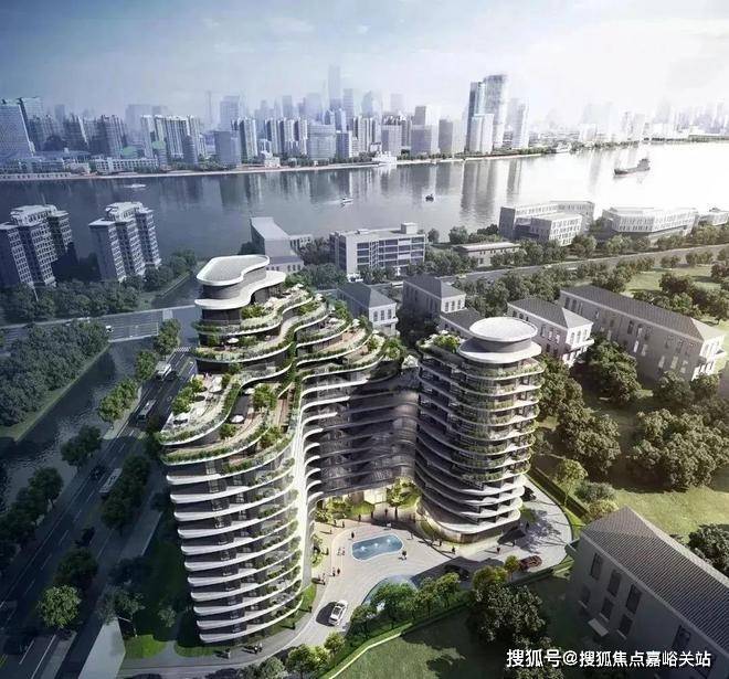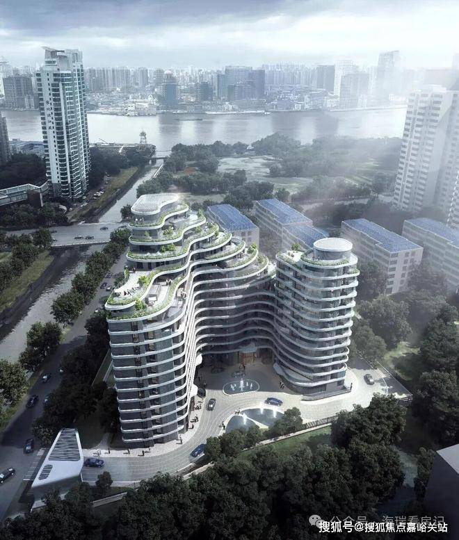 大楼外立面采用前瞻性的退台式波浪线型设计,巧妙地将江景与建筑相融合,