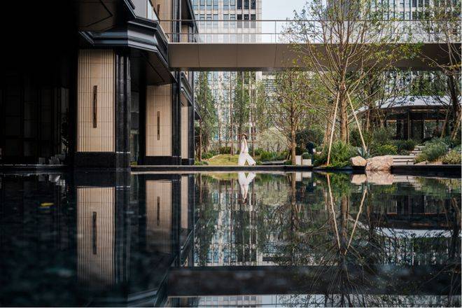 它再现顶豪经典的十字中轴对称布局,归家动线与景观排布层层递进,强烈的秩序感从入园即启。