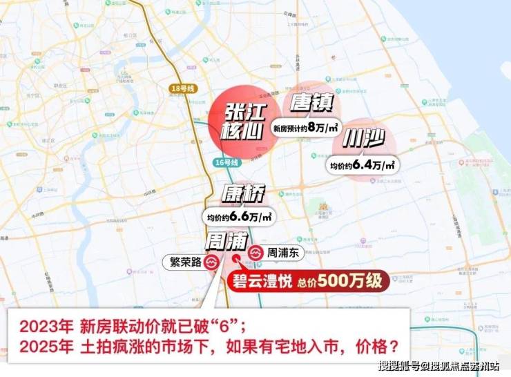 交通方面:距离16号线周浦东站约1.8公里、18号线繁荣路站约2.6公里,算不上名副其实的地铁盘,可借助其他短驳交通工具,通勤到张江、前滩、陆家嘴、人民广场等核心区域还是比较方便的。