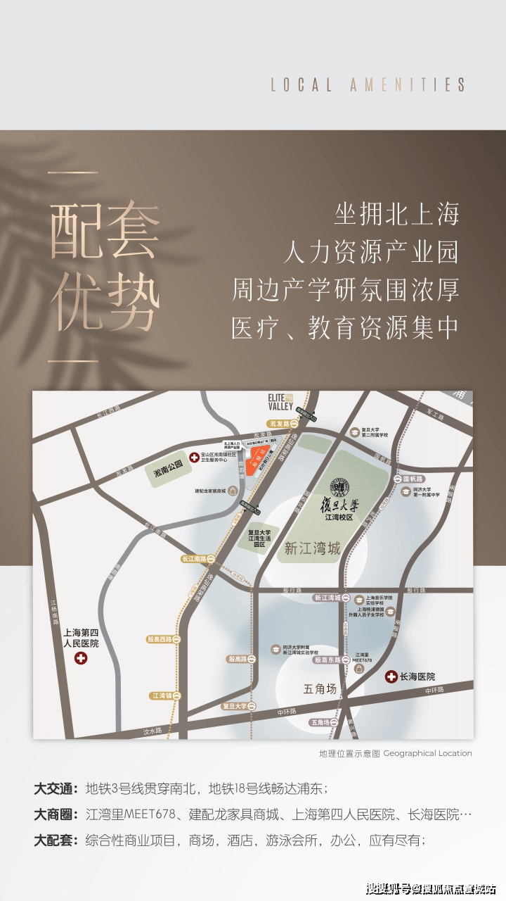 地理位置:位于杨浦区江湾板块,靠近3号线淞发路站(约250米),复旦大学江湾校区(约500米),人民广场核心区域约30分钟可达.