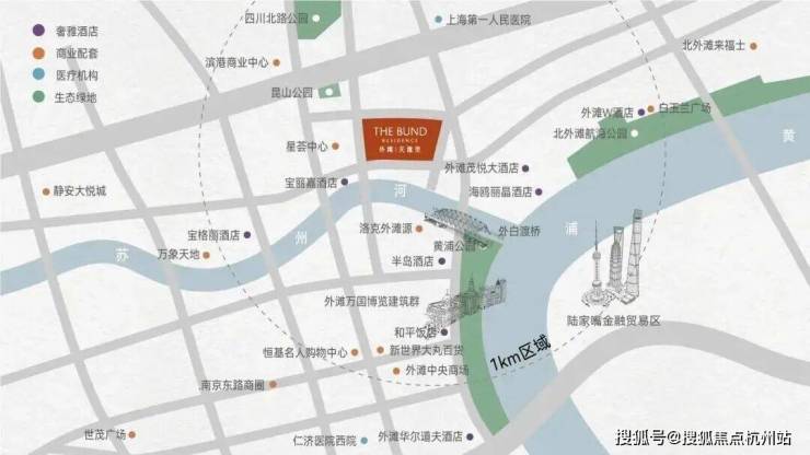 再看项目的位置,选址于黄浦江与苏州河交汇处,距离上海著名的外白渡桥仅约260米,家门巷口的这道湾就是黄浦江精华之所在,从这里可以直接步行至外滩。这里是上海市中心真正核心的优质地段!
