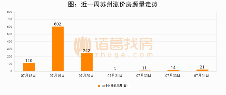 根据诸葛找房数据显示,苏州24小时涨价房源量为21套,较07月23日增加7套,环比上涨50%。与此同时,涨价房源占比小幅扩大,业主信心有所提升。
