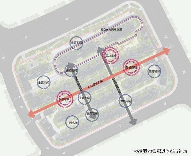 三核心——水景对景区、活力运动区、静谧自然区三大空间,让游赏、静思、私享各有所得