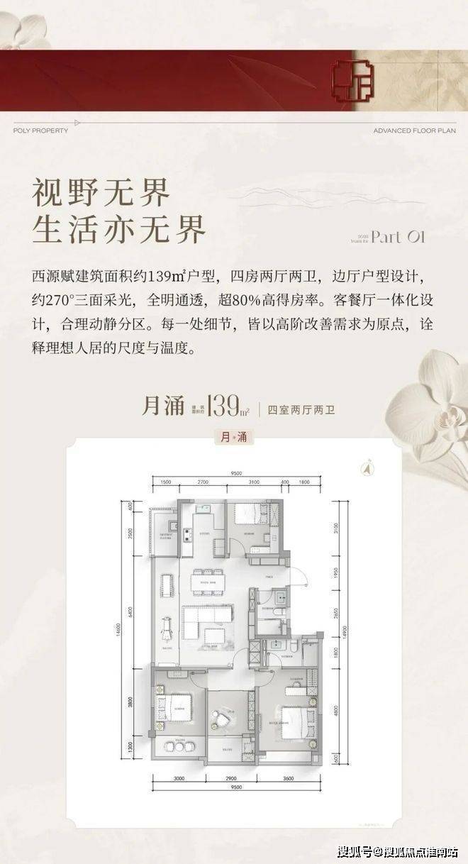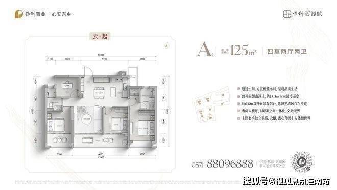保利西源赋售楼处电话:400-881-8994(售楼处最新电话)上海保利西源赋官方电话:400-8818-994✔(官方售楼处预约看房热线)125㎡ 4室2厅2卫(中间套)四开间朝南设计,南向面宽拉满,采光通风效果俱佳;LDKB空间一体化布局,灵活适配二孩家庭日常居住需求;主卧套房设计,配备独立卫浴与专属衣橱,私密性十足;封闭式阳台可灵活改造,进一步提升空间利用率!