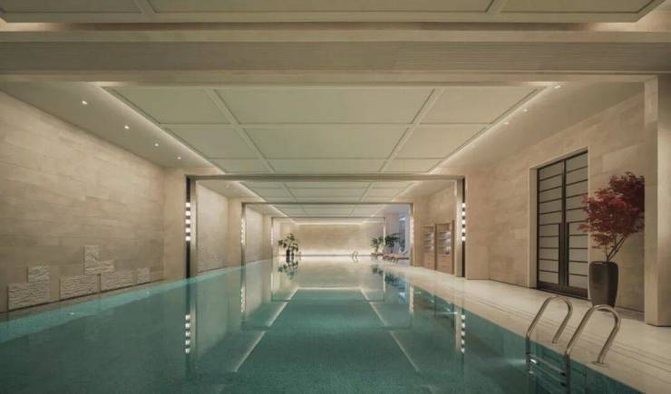 而康定壹拾玖整体会所空间约3000㎡,其中包含约1800㎡下沉式会所,涵盖泳池、瑜伽室、健身房、私宴厅等。