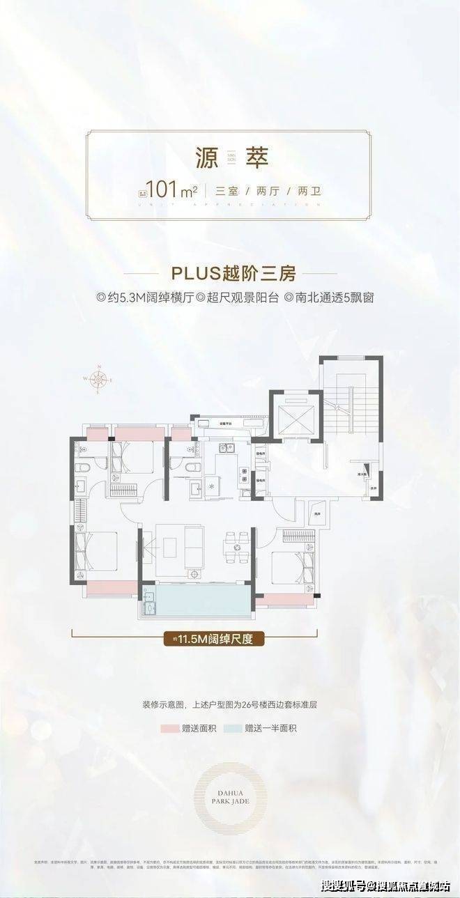 上海宝山大华公园柏翠售楼处电话☎:400-8673-567【开发商售楼处预约看房热线】(一对一热情服务)经典飞机户型+三开间朝南+餐客厨一体化+约5.3m的阔绰横厅,整体南向面宽达到约11.5m!整个户型的通透度和采光度很棒.