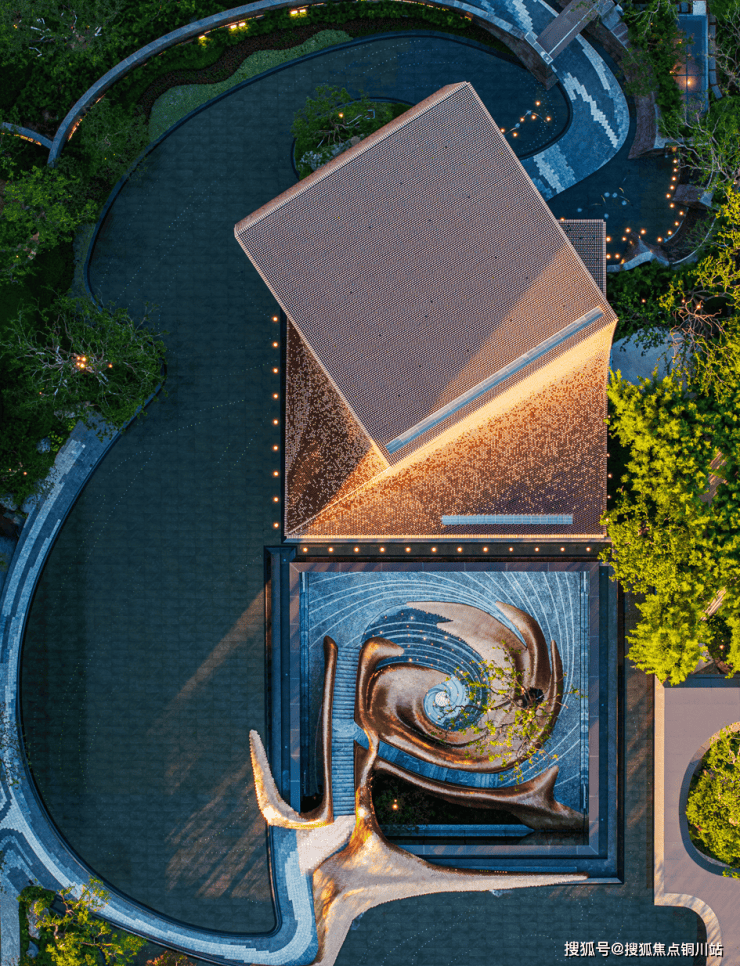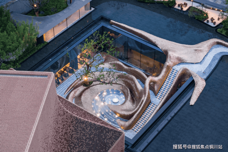 而整个景观场域,最引入瞩目的无疑是示范区节点主景观、下沉庭院中庭景致“两宜来”,取意于《永乐大典·乐章》“箫韶九成凤凰来仪”,箫韶之曲连续演奏,凤凰也随乐声翩翩起舞.