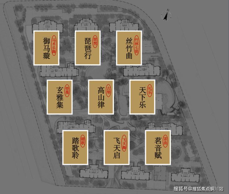 以《永乐大典》乐典构筑大区景观,将贵族礼乐化作生活秩序,创造隆重规整的仪式感,美化住区;又以雅致诗情刻画生活风景,给生活骋目游心的松弛情绪,美化人心.