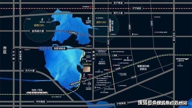 项目区位图苏州独墅湖科教创新区被誉为国际新“硅谷”,已建成集教育科研、新兴产业、生活配套为一体的现代化新城。区域内相继建设多个科技创新载体,如生物医药产业园,纳米研究所、创意产业园、大学科技园等,包括华为、微软、同城等众多知名大企入住。