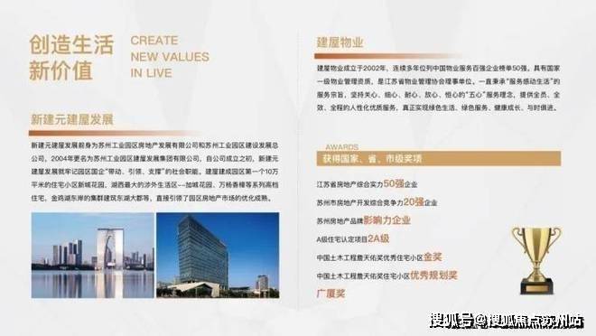 园区之子,国企建屋新建元建屋发展为老牌全资国企,隶属于园区管委会,是江苏省房地产综合实力50强企业。截止 目前累计开发面积880余万平方米,资产规模达161亿元。