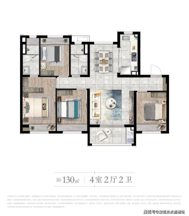 [C户型 ] 建筑面积约130㎡ | 4房2厅2卫