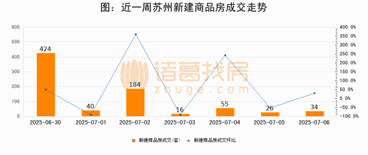 【苏州成交日报】07月06日新房成交34套、二手房6套;涨价房源372套