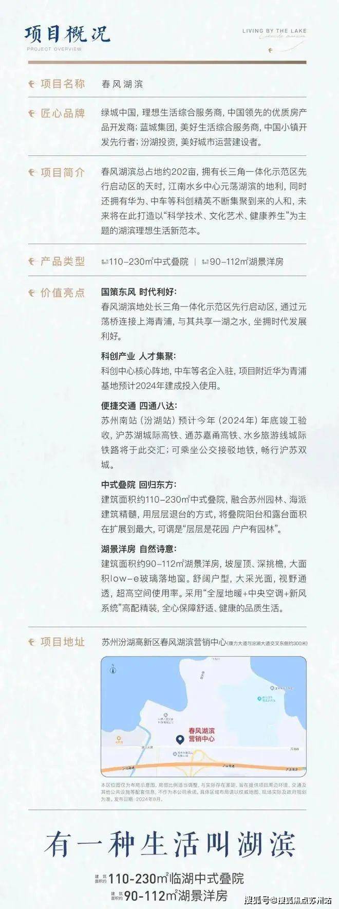 发展前景:春风湖滨地处青浦、吴江、嘉善交界,毗邻水乡客厅,水乡客厅由两省一市(江浙沪)共同打造,总投资约290亿元。