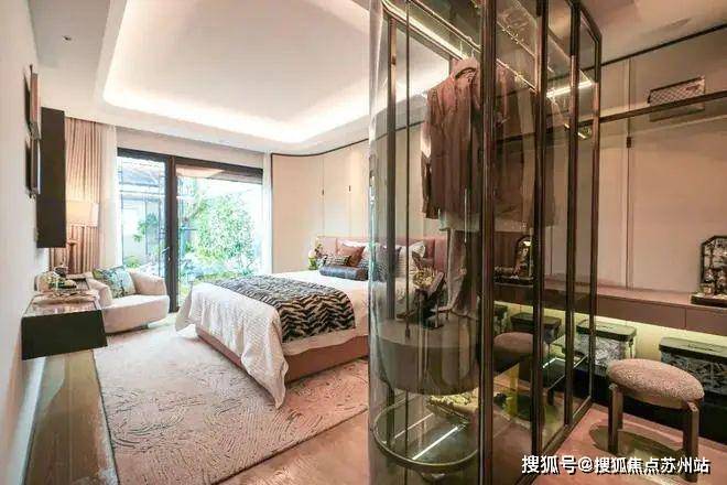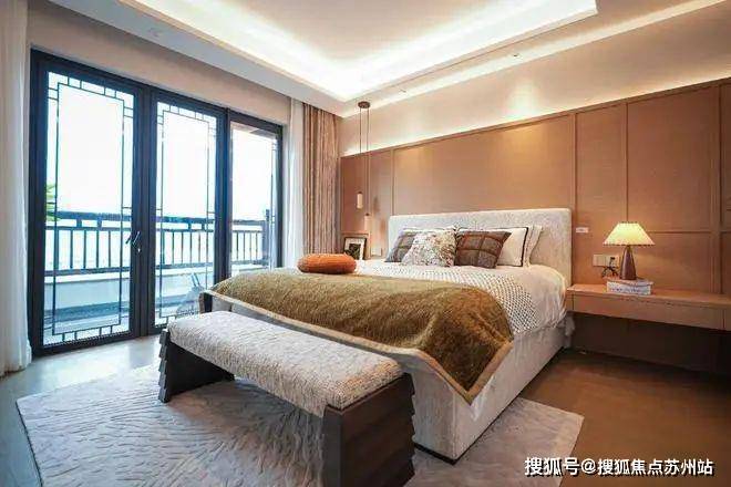 朝南主卧套房设计,主卧开间约3.6米,配置独立卫浴和步入式衣帽间,满足主人私密的个人生活空间,又能随时看到园中四季美景。