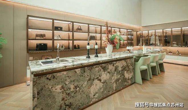 约1000㎡的中央水院,以苏州畅园、退思园为蓝本,提取中国山水画中的叠水、曲桥、景亭、荷花等元素,以水为媒,以石为伴,展现一方如诗如画的江南盛景;架于水面之上的连廊,以层层叠水为点缀,听水声潺潺,赏灵动诗意;景亭与连廊对望,举步之间衍生出富有层次的美景变化。