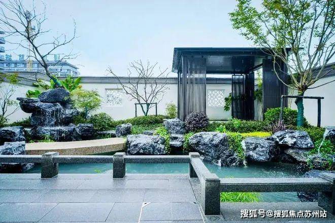 推开院门,东方美学花园映入眼帘,小桥流水、叠石景亭,意趣盎然,令人仿佛置身一幅流动的江南水墨画中。“小院朱扉开,天地纳君怀”,让现代人与东方花园久别重逢,找到独立的闲趣空间,回归精神文化的原乡。